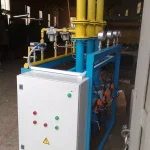 На каркасе установке расположен шкаф управления, обеспечивающий управление исполнительными механизмами, контроль параметров автоматики безопасности, измерение температур и обмен данными с компьютером диспетчера (АРМ диспетчера) через последовательный интерфейс.