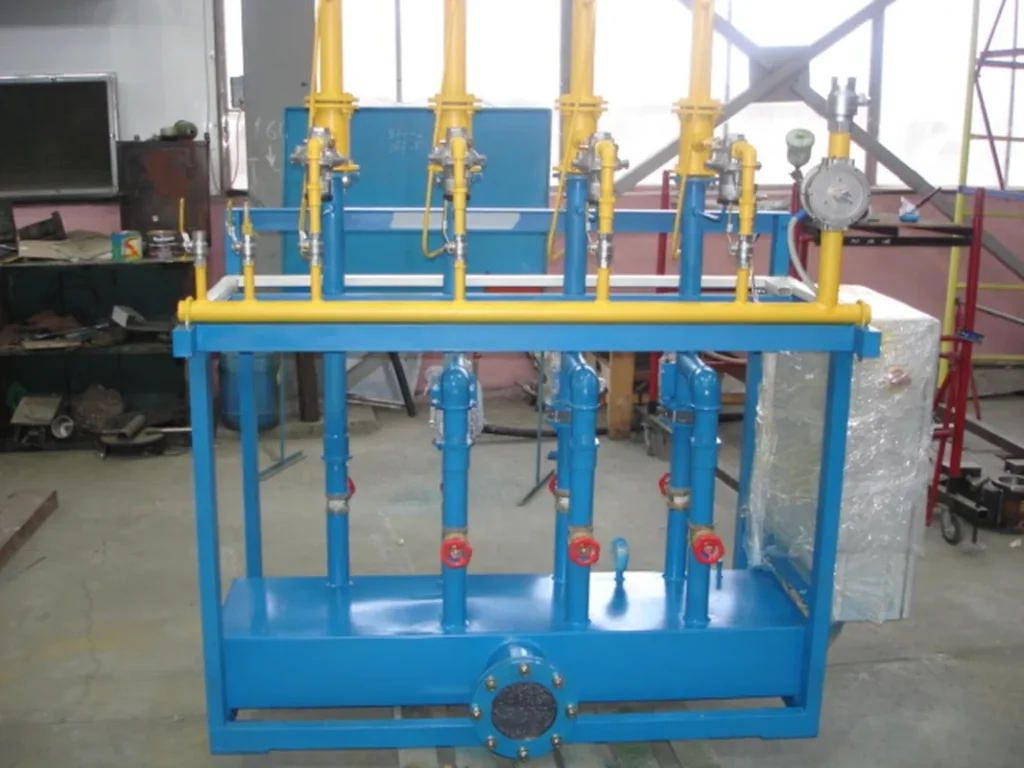 Газосмесительная станция предназначена для приготовления, подачи и регулирования необходимого количества газовоздушной смеси (газа + воздуха), подаваемой на газовые горелки каналов питателей и выработочных каналов стекловаренных печей.